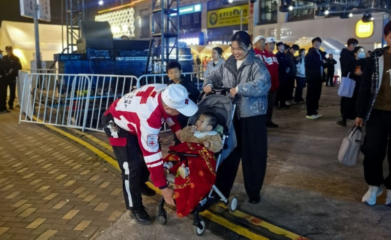 救援队的主要任务是动态观察现场情况,及时疏导引导,防止通道拥堵,并为需要帮助的市民提供便利。队员们穿梭在人群中,彼此配合默契,确保各项活动平稳进行。