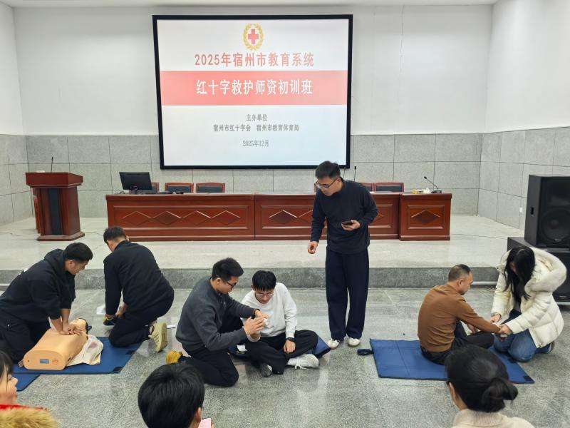 为进一步促进宿州市校园安全体系建设,提升广大师生自救互救能力、保障校园安全,12月22-26日,市红十字会、市教体局联合举办全市教育系统红十字应急救护初级师资培训班。来自市县区各级学校的30名教师经过5天的系统学习,完成从“救护员”到“救护师资”的能力跃升,为健康宿州建设注入新动能。