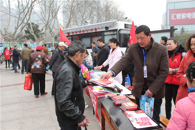 为纪念毛泽东同志“向雷锋同志学习”题词发表53周年,传承雷锋精神,埇桥区红十字会组织埇桥区红十字志愿服务总队、红十字应急救援大队、市第一人民医院及区农合管理中心分别走进观李社区、文化科技广场、三角洲公园开展学雷锋活动。