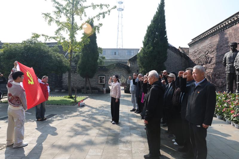 在淮海战役总前委旧址,老干部们参观了淮海战役讲解展馆。通过观看历史资料、听讲解员深情讲述,切身体会到老一辈为美好生活的拼搏奋斗。并面向党旗庄严宣誓,重温入党誓词,抒发对党的热爱,表达对党的忠诚。