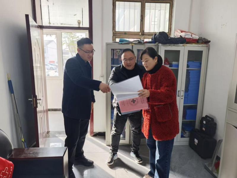 在物资管理走访环节,县红十字会工作人员详细了解物资储备品类、台账记录规范度及发放流程运转情况,逐一核对物资出入库单据,实地查看仓储环境及管护情况,现场指导完善台账管理机制,强调以“零差错”标准抓实物资全流程监管,确保每一批物资精准送达群众手中。