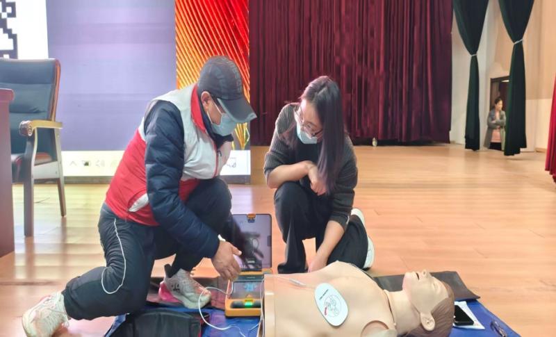 培训现场,志愿服务队的讲师们结合真实案例,用通俗易懂的语言拆解心肺复苏、海姆立克急救等核心技能,从动作要领到注意事项,每一个细节都讲解得细致入微。随后的实操环节中,讲师们手把手指导,参训人员分组演练、相互纠错,在反复练习中熟练掌握了应急救护的关键流程,现场学习氛围浓厚。