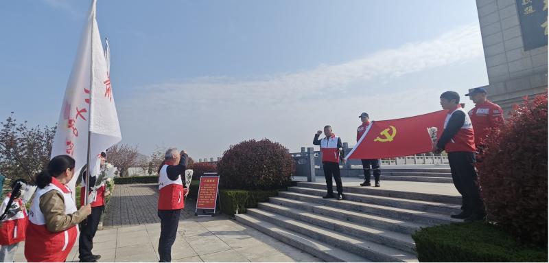 活动现场,松柏肃立,气氛凝重。全体志愿者整齐列队,向革命烈士墓敬献花圈,俯身整理缎带,以此表达对先烈们的无尽追思与崇高敬意。在庄严肃穆的烈士纪念碑前,面对鲜红的中国共产党党旗,全体党员志愿者高举右拳,齐声重温入党誓词。铿锵有力的誓言在陵园回荡,不仅是对初心使命的再次庄严承诺,更是对红色信仰的坚定传承。随后,志愿者们细致擦拭烈士墓碑,大家以此种最直接、最朴素的方式,缅怀革命先辈的丰功伟绩,让历史的印记更加清晰,让英烈的精神永远长存。